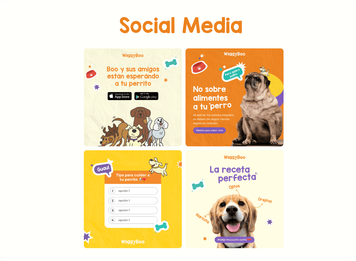 My role in this project focused on the comprehensive design of the entire brand ecosystem, from creating the logo, colors, and typography, to designing the graphic line for social media, and crafting each component for both the mobile main platform and the desktop back office. The design process began by understanding the client's mental concept and researching what the competition was doing that we could do better. Subsequently, we grasped the approach of potential users through surveys and forms regarding their needs. The design emphasized the warmth and dynamism of being a tutor, while usability focused on providing the best experience for comparing options, selecting favorites, and ensuring the well-being of their pets on an efficient and intuitive platform.