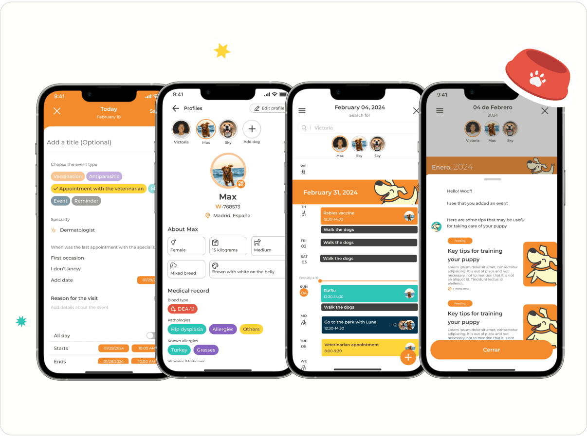 Tips’s Section: Based in user’s search and data that he puts in the app, the platform will suggest tips for the breed of his dog, the lifestyle, its age and more.