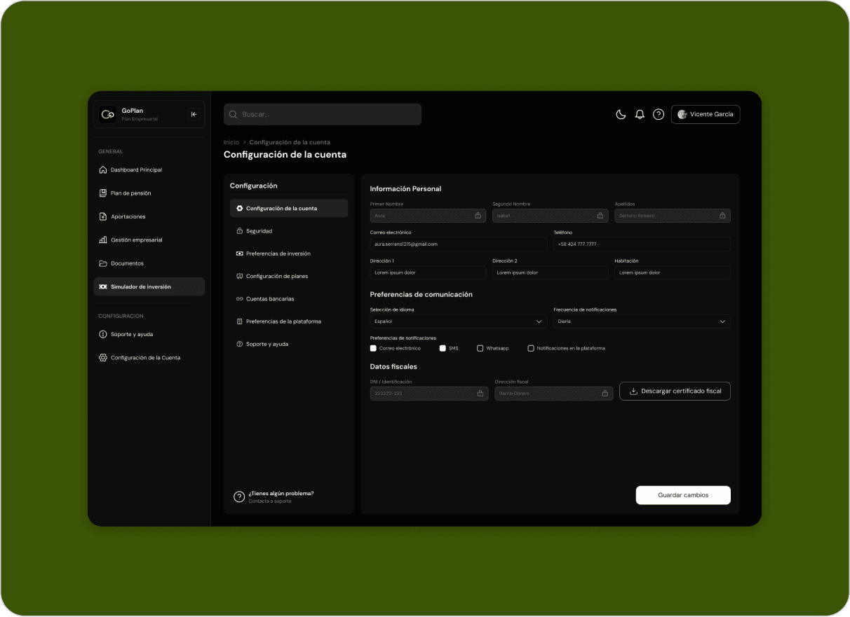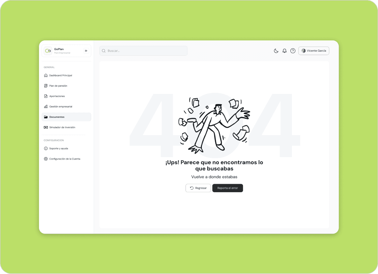 Served as the sole designer on GoPlan, a Spanish fintech platform for private retirement plan management. Over 4 months, I delivered the complete product from zero: brand identity, design system, 20+ screens, custom illustrations, animated prototype, and landing page — all in a single engagement directly with the founding team. The product continued into active development after handoff, validating the scalability of the design foundation.